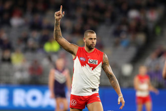 7As Lance Franklin closes on 1000th goal AFL prepares for fan invasion. The Swans legend starts the new season only five goals. 11Lance Franklin plays in the moment.